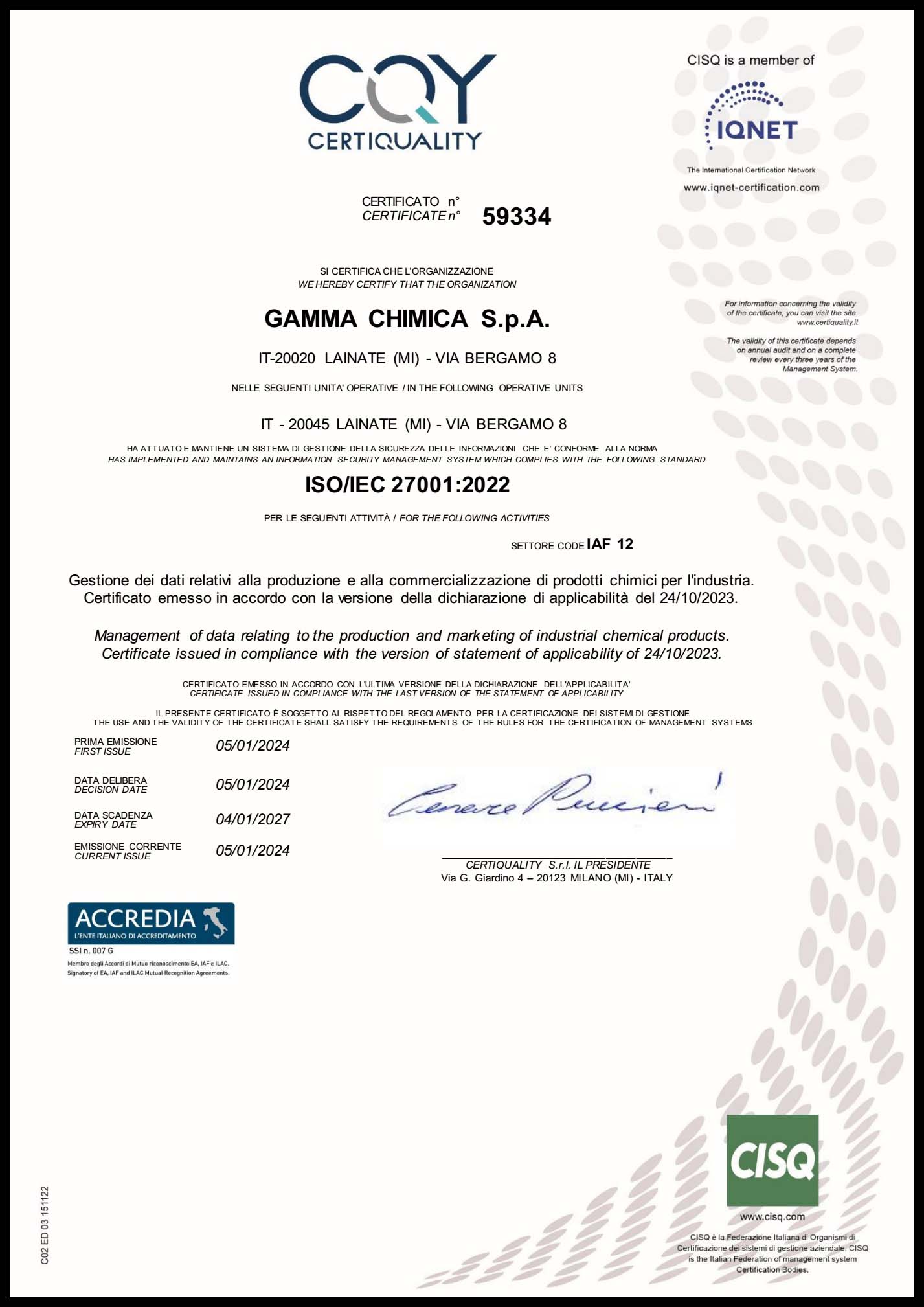 Our Certificate